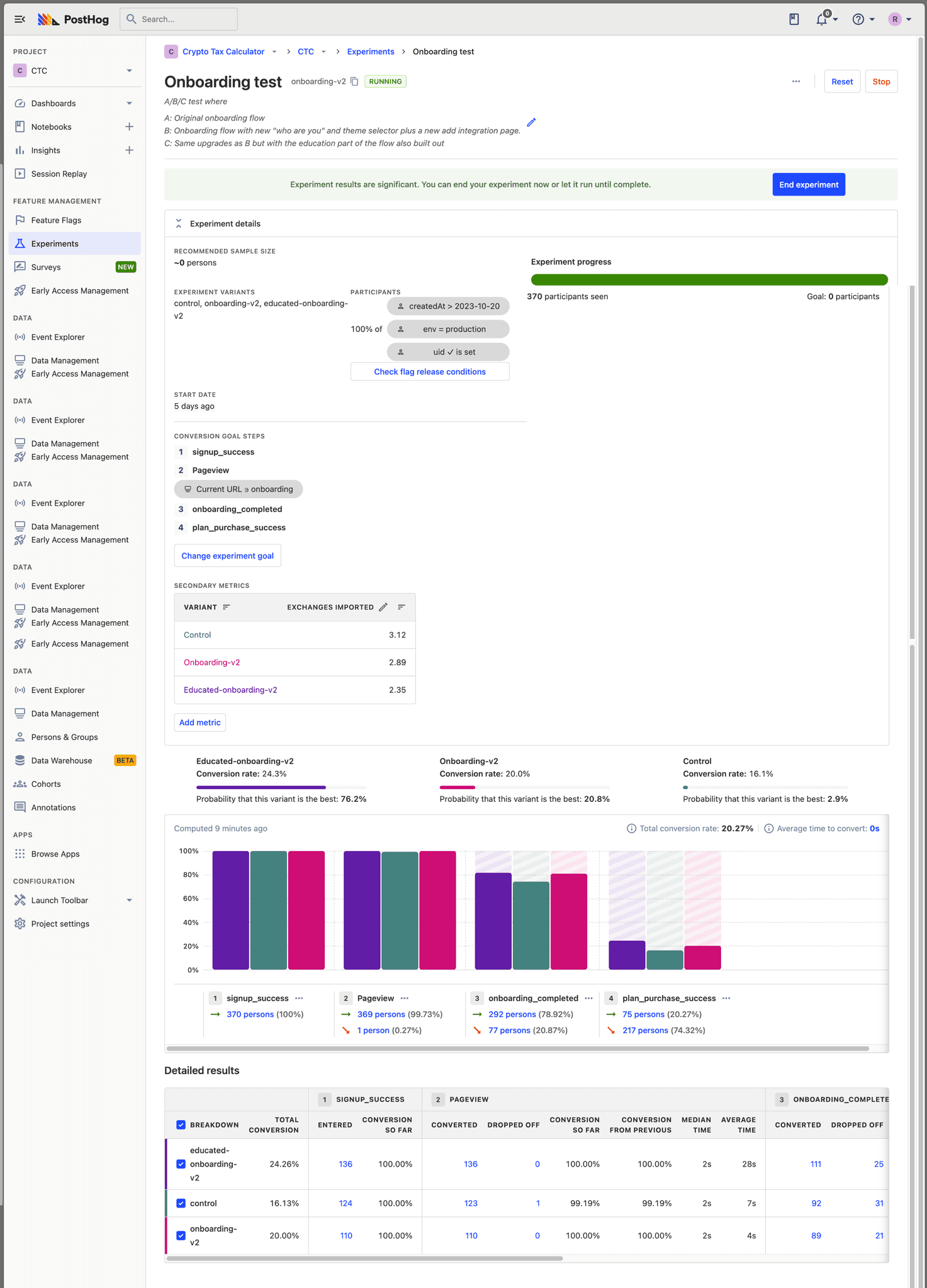 To measure the impact of our new flow and our education hypothesis, we ran a live A/B test with three variants. The results were clear.